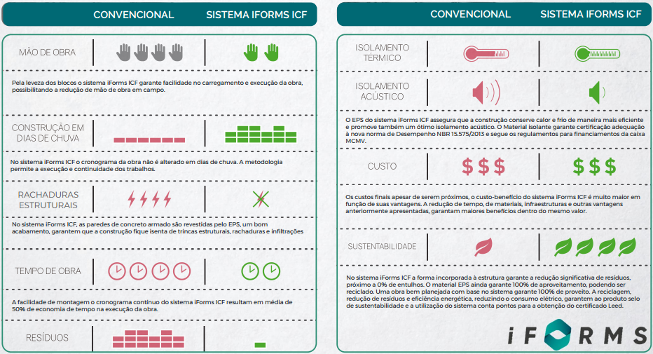 O sistema de formas de concreto isoladas (ICF - Insulated Concrete Forms) tem suas raízes no periodo pós-Segunda guerra Mundial, com experimentos utilizando blocos de madeira tratada com cimento na suiça. Na decada de 1960, o desenvolvimento de espumas plásticas, como o EPS (poliestireno expandido), permitiu ao inventor alemão, residente no Canadá, criasse a primeira forma ICF em 1966 e patenteada nos EUA em 1968.